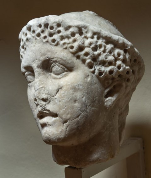 - Oberfläche verrieben, Nase u. Mund bestoßen, Flügel abgebr., Bruch durch den Hals