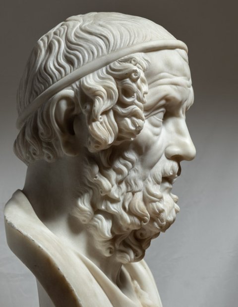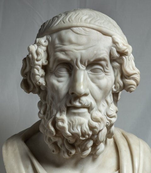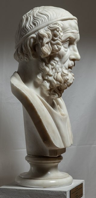 - Porträtbüste des Homer, römische (?) Kopie des hellenistischen Originals.