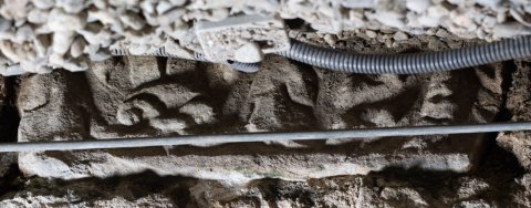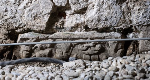 - Während der Grabung 2003/04 im Oberen Schlosshof vor der Römersteinwand freigelegt, 2019 bei der Renovierung der Römersteinwand partiell und 2020 im Zuge der Drainagearbeiten vollständig aufgedeckt