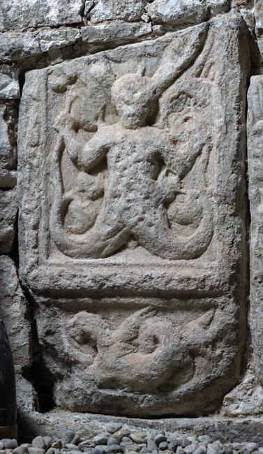 - im abgebrochenen Alten Turm in der Schlossanlage verbaut, das untere Fragment ansichtig in der Römersteinwand, das obere Fragment als Baumaterial verwendet und 2003 beim Durchbrechen einer Wand im Oberen Schloss entdeckt, der Abschnitt wurde mit dem Abbruchmaterial des Alten Turms 1831 vermauert
