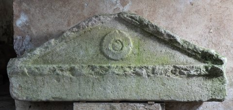 - gerahmter Giebel mit Schale (Rundschild ?)