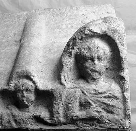 309 Aschenkistendeckel mit Grabrelief einer Familie