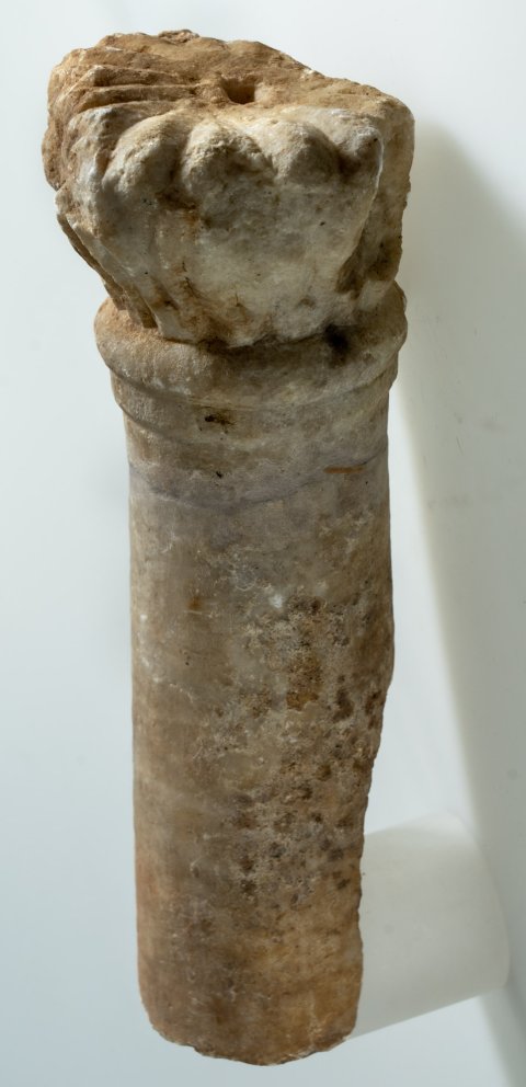 - Glatter Säulenschaft mit Blattkapitell, Stütze eines Altartisches.