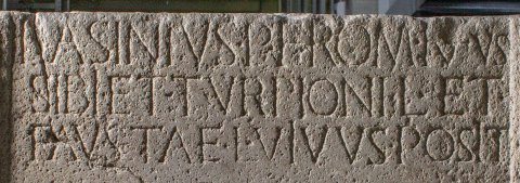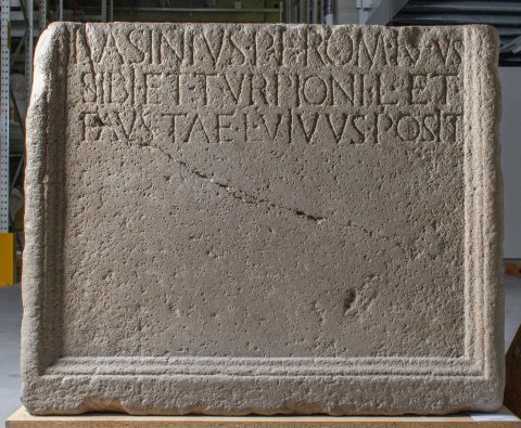 - P(ublius) Asinius P(ubli) f(ilius) Rom(ilia) Rufus / sibi et Turpioni l(iberto) / et Faustae l(ibertae) vivus pos(u)it