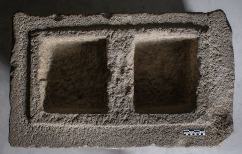 - Kiste mit zwei eckigen Aushöhlungen für Aschenurnen