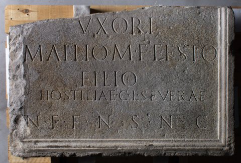 - ---] / uxori / M(arco) Allio M(arci) f(ilio) Festo / filio / Hostiliae C(ai) l(ibertae) Severae / n(on) f(ui) f(ui) n(on) s(um) n(on) c(uro)