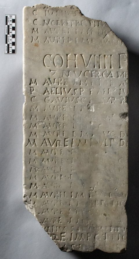 M̲(arcus) A̲urel(ius) M(arci) f̲(ilius) Cl(audia) Io[---] /