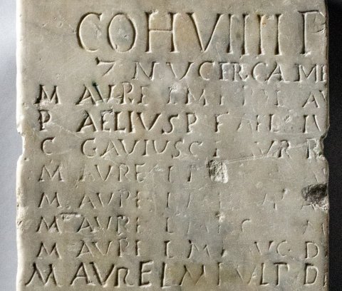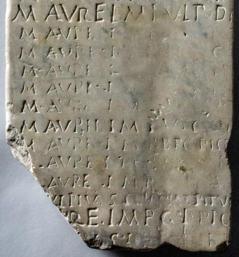 [M(arcus)] A̲u̲r̲e̲l̲(ius) M̲(arci) f̲(ilius) A̲u̲r̲(elia) L̲u̲[---] /