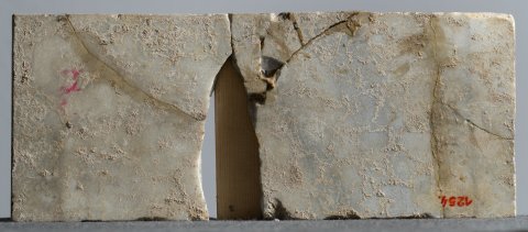- aus mehreren Fragmenten zusammengesetzt, in der Mitte größere Fehlstelle