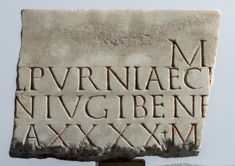 - [D(is)] M(anibus) / [Ca]lpurniae C(ai) f(iliae?) [---] / [co]niugi bene [merenti] / [vix(it)] a(nnos) XXXX m(enses) [---