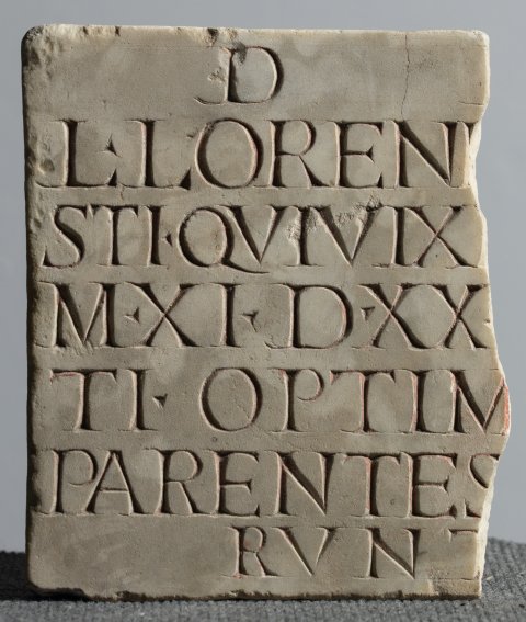 - D(is) [M(anibus)] / L(uci?) Loren[i? ---]/sti qui vix(it) [---] / m(enses) XI d(ies) XX[---]/ti optim[o ---] / parentes [--- fece]/runt