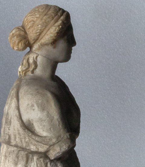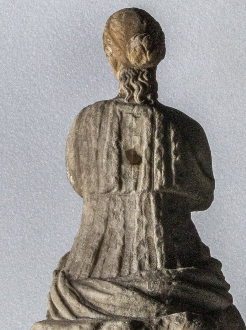 - Mythische Figur: auf einem Felsen sitzende Muse, Nachbildung einer Figur aus einer hellenistischen Marsyas-Gruppe.