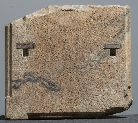 - stark verrieben, Oberkante u. linke untere Ecke verbr., Rückseite bearbeitet (Architekturstück ?)