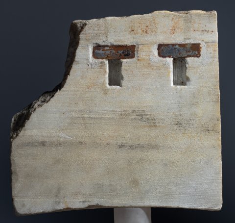 - bestoßen, oben abgebr., Rückseite abgesägt