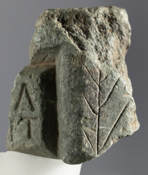 - Seite b: auf dem wulstigen Rahmen eingeritzte Fischgrätmuster