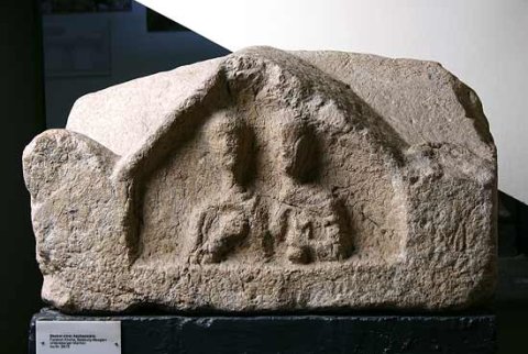 312 Aschenkistendeckel mit Grabrelief eines Ehepaares