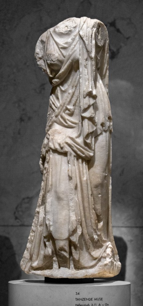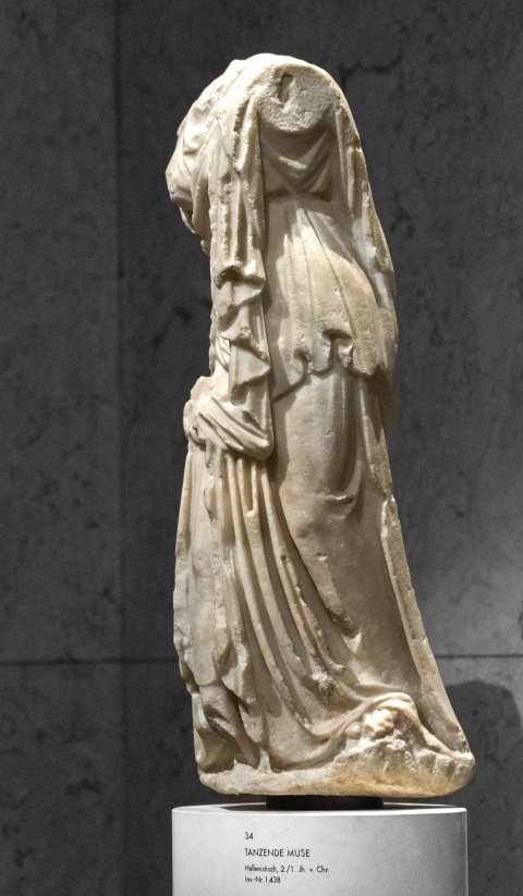 - Bewegte Frauenfigur in Chiton und Mantel. Tanzende Muse.