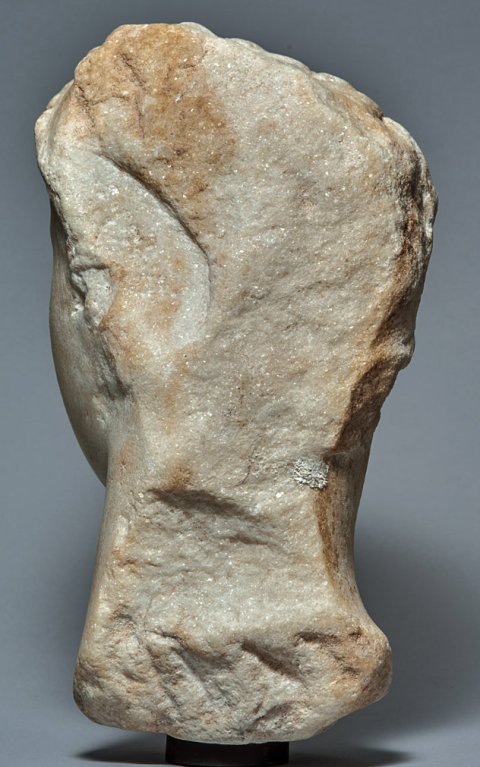 - Kopf zum Einsetzen, bestoßen, fehlende Teile des Ober- u. Hinterkopfs u. die Ohren waren in Stuck ausgeführt.