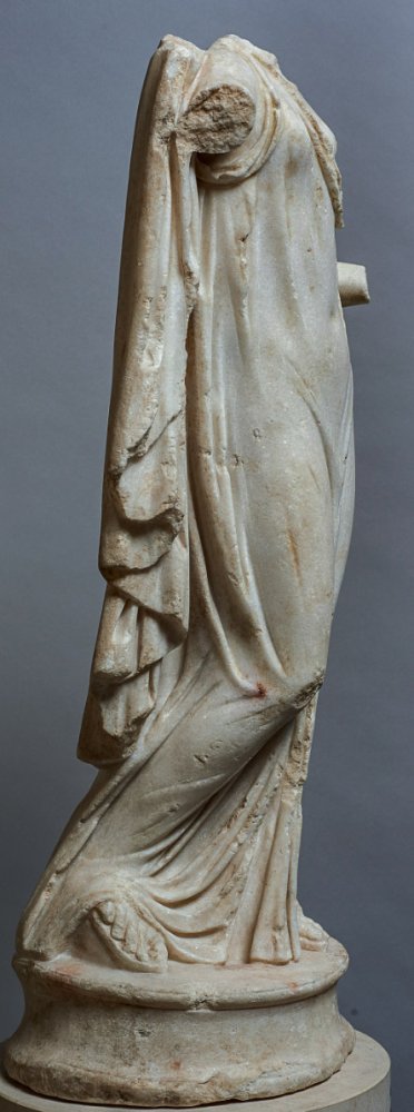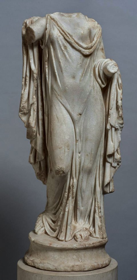 - Mythische Figur: Aphrodite, Typus Venus Genetrix, im ungegürteten Chiton, Mantel über Rücken und linkem Arm. Römische Kopie nach Original des späten 5. Jhs. v. Chr.