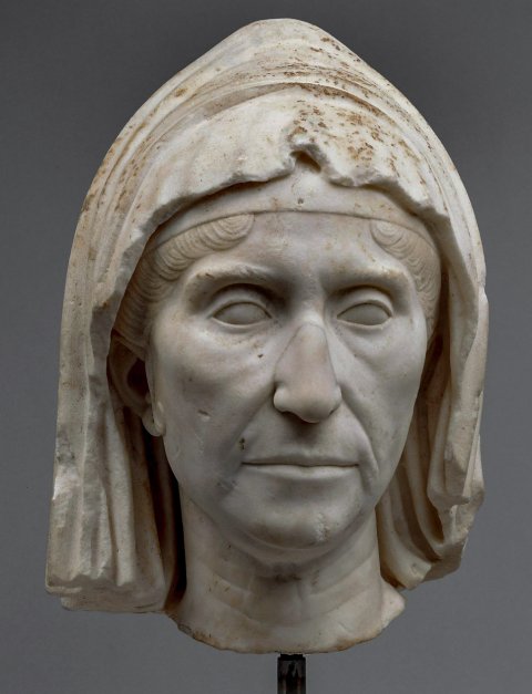 - Kopf zum Einsetzen, leicht bestoßen, Mantel in Höhe des Halsansatzes abgebr., Nase ergänzt