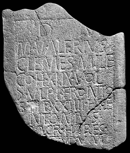 - D(is) M(anibus) / M(arcus) Valerius / Cleme(n)s mile(s) / coh(ortis) XIIX vol(untariorum) / |(centuria) Ulpi Fronto(nis) / stip(endiorum) XXIIII h(ic) s(itus) e(st) / Antonius / Mac(e)r heres / [faci]endum / [curavit]