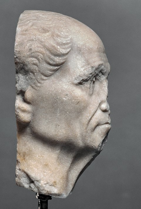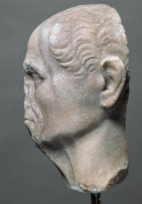 - Porträt eines alten bartlosen Mannes mit kahler Stirn