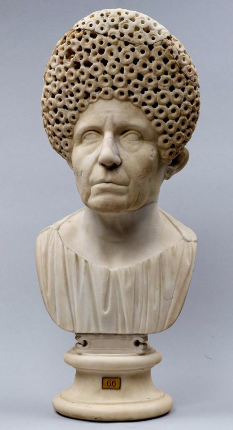 - Teile der Frisur u. Ohren, Nase und Büste modern ergänzt