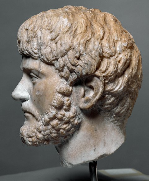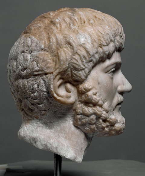 - Porträt eines jüngeren bärtigen Mannes mit mit dichtem kurz gesträhnten Haar