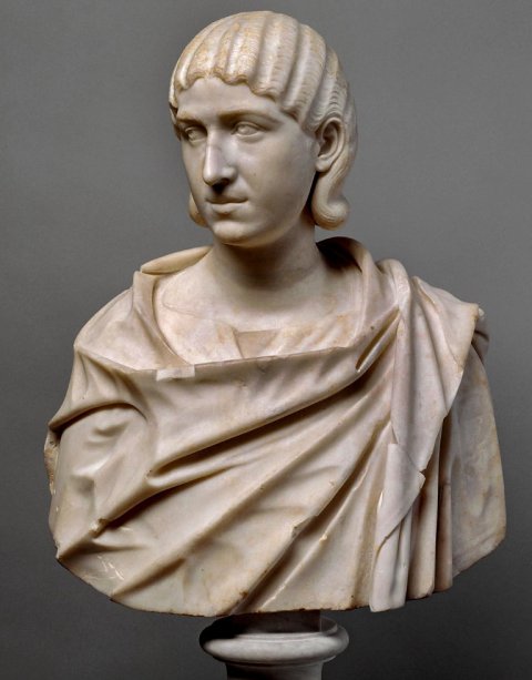 - Büste nicht zugehörig (?), Bruch durch den Hals, Nasenspitze ergänzt