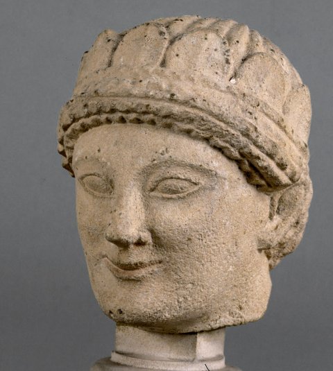 - Köpfchen eines Jünglings mit Blattkrone, Teil einer Vortivstatuette