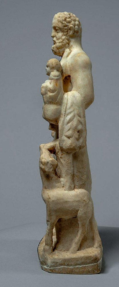 - Mythische Figur: stehender nackter bärtiger Hercules, auf dem linken Arm mit Löwenfell Telephosknabe, in der Rechten Keule, die auf einem Stierkopf aufliegt. Neben dem linken Bein Stütze und Hirschkuh.