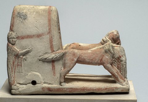 - bestoßen, 1 Pferdekopf u. Kopf des Pferdeführers abgebr., rote Bemalung