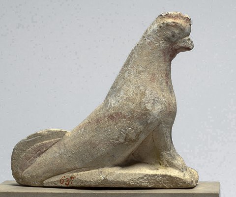 - Hahn, Votivplastik mit Resten von roter und schwarzer Bemalung