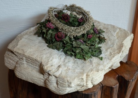 - rechts abgebr., Ober- u. Unterseite abgeschlagen, stark verwittert