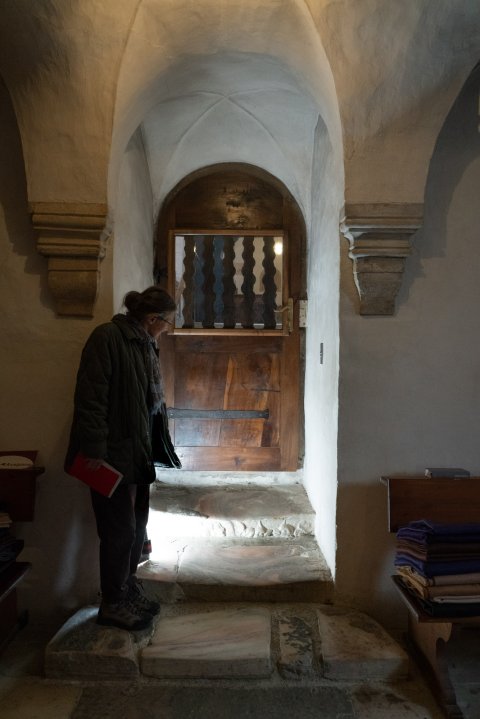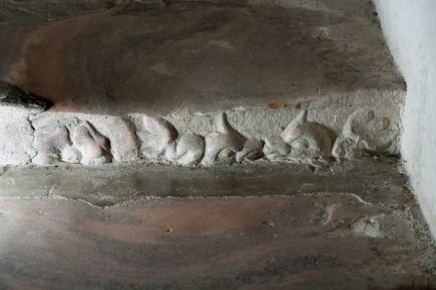 - Treppenstufe im nördlichen Abgang zur Krypta