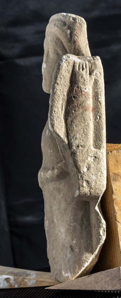 - stark bestoßen, rechts Seite verbr., unten abgebr.