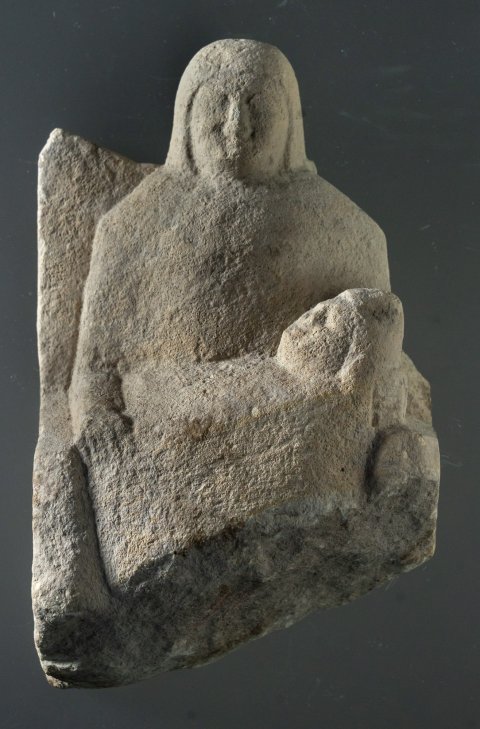 - Mythische Figur: thronende Göttin (Kourotrophos), langes Gewand, Schleier, auf den Knien Wickelkind.