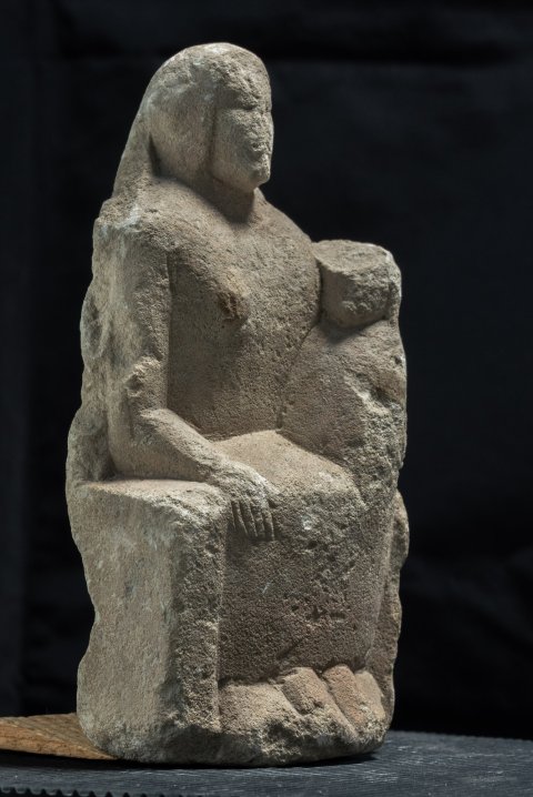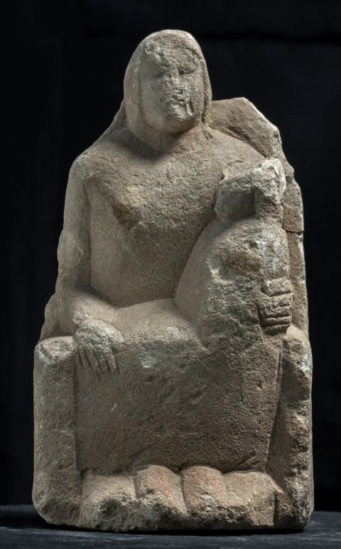 - Mythische Figur: thronende Göttin (Kourotrophos), langes Ärmelgewand, auf den Knien Wickelkind.