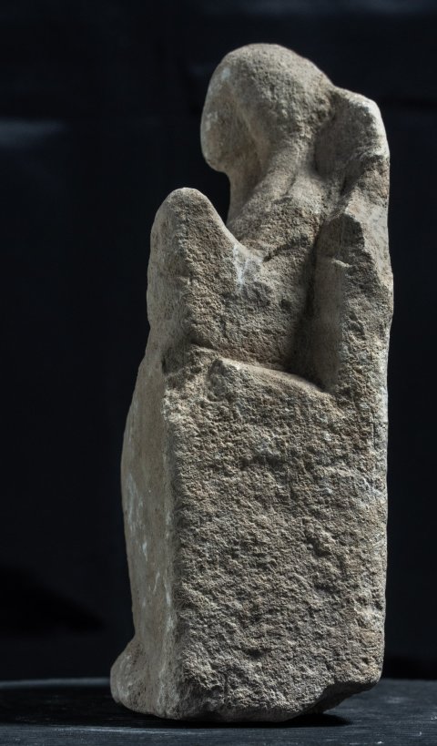 - Mythische Figur: thronende Göttin (Kourotrophos), langes Ärmelgewand, Schleier, auf den Knien Wickelkind.