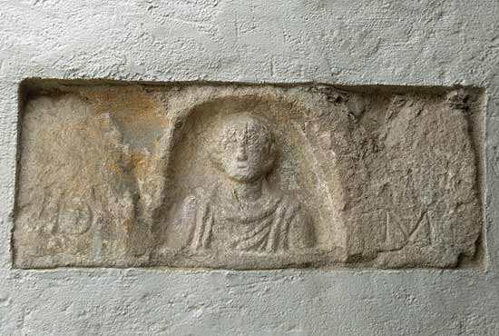 314 Aschenkistendeckel mit Grabrelief eines Mannes
