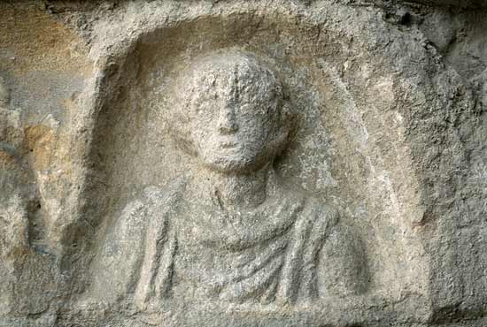 314 Aschenkistendeckel mit Grabrelief eines Mannes