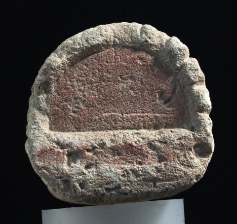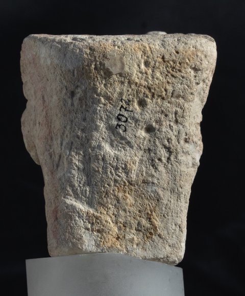 - bestoßen, Spuren roter Bemalung, Bruch durch den Hals