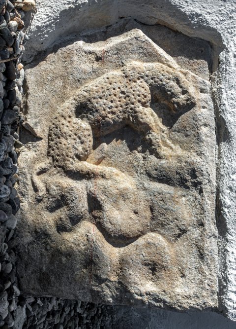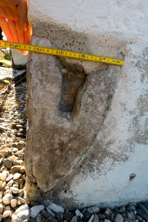 - rundum abgebr. (rechts u. unten Rand ?), stark verrieben, in der Unterseite Aushöhlung