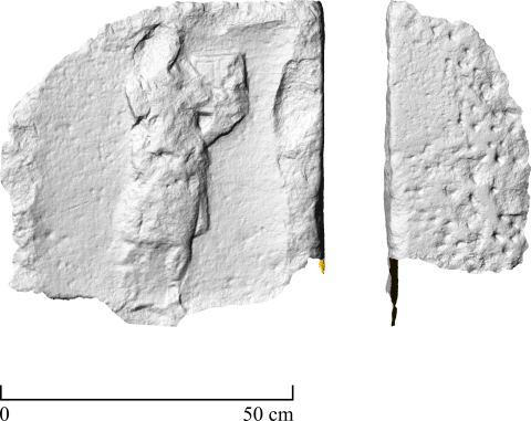 - oben u. unten verbr., rechts beschnitten, Relief u. Eckkante abgeschlagen