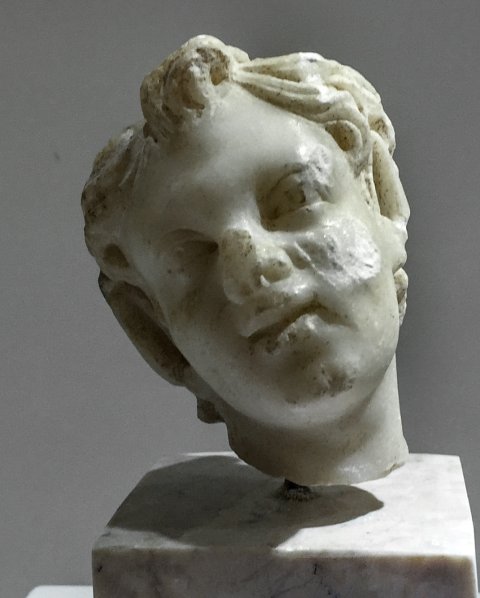 - Mythische Figur: Kopf eines jugedlichen Satyrs mit Tierohren.