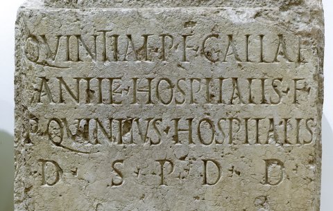 - Quintiae P(ubli) f(iliae) Gallae / Antik(ariensi)(!) Hospitalis f(iliae) / P(ublius) Quintius Hospitalis / d(e) s(ua) p(ecunia) d(edit) d(edicavit)