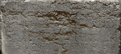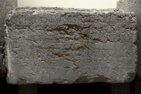 - Iuliae Aug(ustae) Drusi [fil(iae)] div[i Aug(usti)] / matri Ti(beri) Caesaris Aug(usti) principis / et conservatoris et Drusi Ger/manici genet[ric]i{s} orbis / M(arcus) Cornelius Proculus / pontufex(!) Caesarum