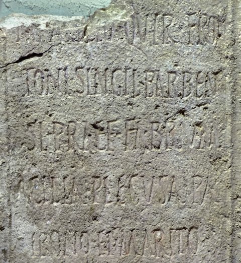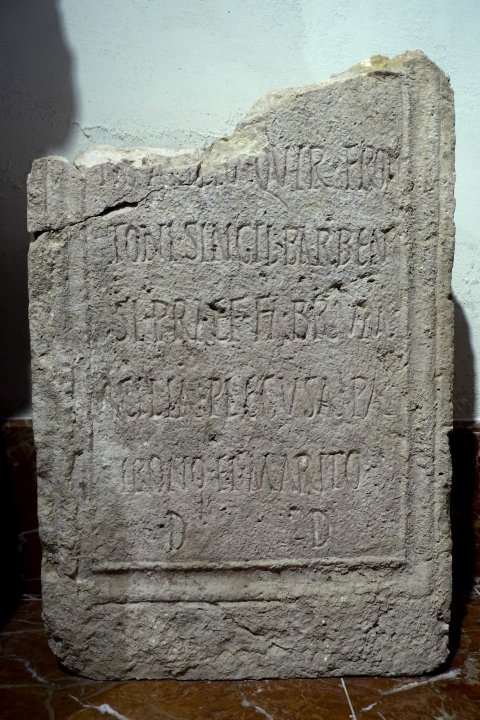 - M(anio) Acilio Quir(ina) Fron/toni Singil(iensi) Barben/si praef(ecto) fabrum / Acilia Plecusa pa/trono et marito / d(ecreto) d(ecurionum)