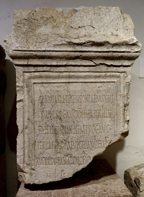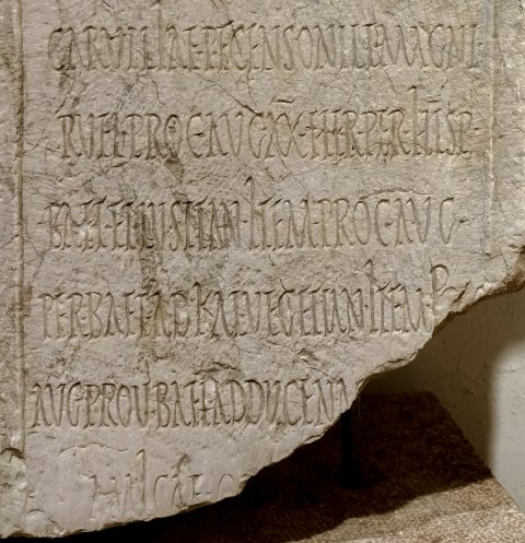 - Carviliae P(ubli) f(iliae) Censonill(ae) Magni / Rufi proc(uratoris) Aug(usti) XX her(editatium) per Hisp(aniam) / Baet(icam) et Lusitan(iam) item proc(uratoris) Aug(usti) / per Baet(icam) ad kal(endarium) Vegetian(um) item pr[o]c(uratoris) / Aug(usti) prov(inciae) Baet(icae) ad ducen(a) Ac[il(ia) Plec(usa)] / amicae op[timae d(ono) d(at)]