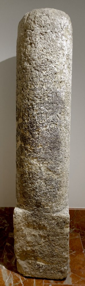 - [Imp(erator) Cae]s(ar) divi V[e]/[spasi]ani f(ilius) Dom[i]/[tianus Aug(ustus) Germa]/[ni]c[us pontif(ex) ma]/[x]imus tribunic(ia) / p[otest(ate)] VI imp(erator) / X[IIII] co(n)[s(ul)] XIII cen/[sor p]erpetuus p(ater) p(atriae) / viam fecit / Domitianam / Augustam / VI
